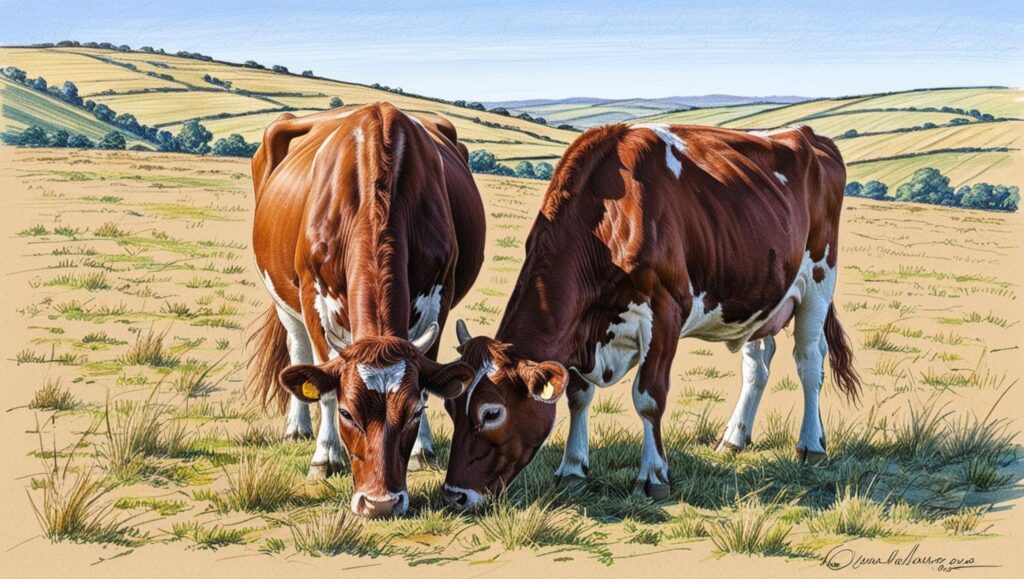 Jetzt hob die gescheckte Kuh endlich den Kopf und unterbrach ihr Frühstück.